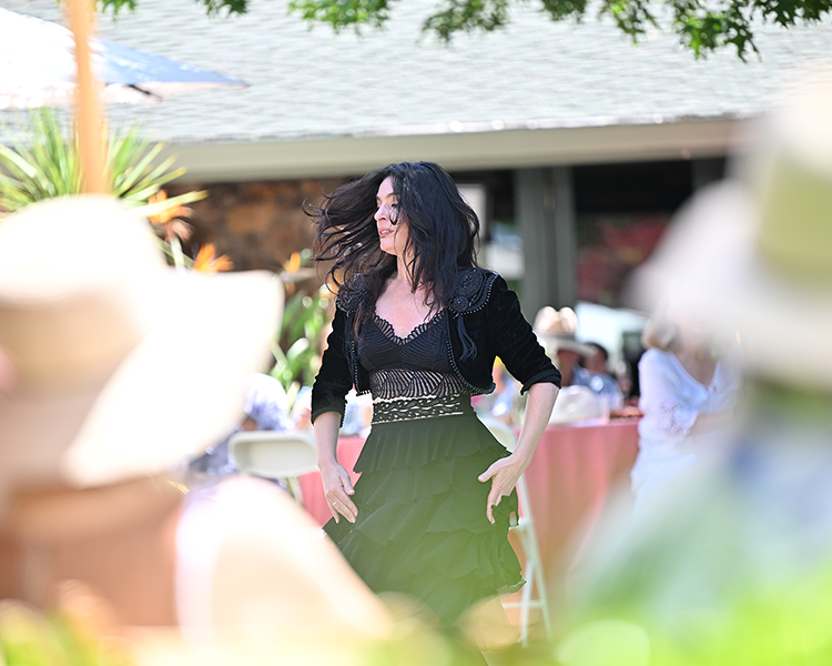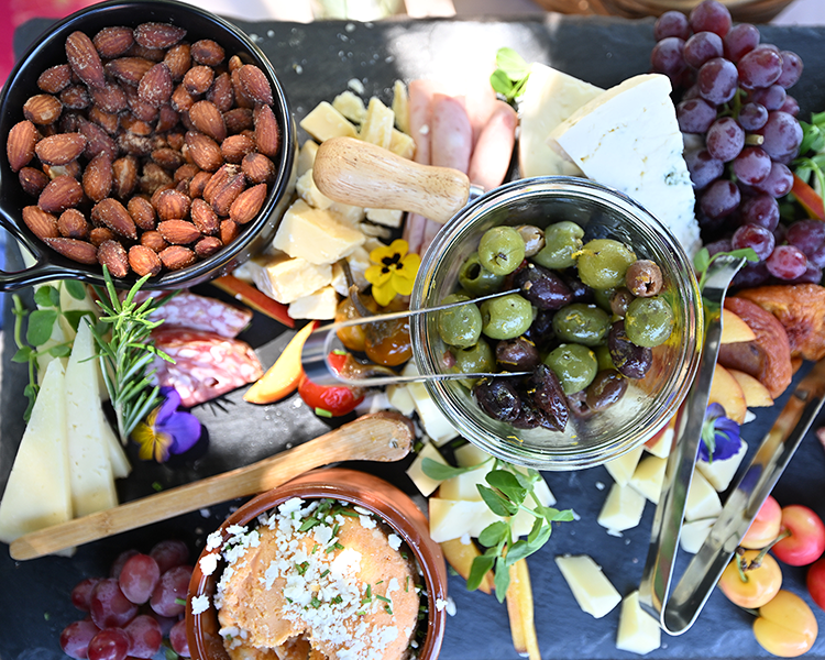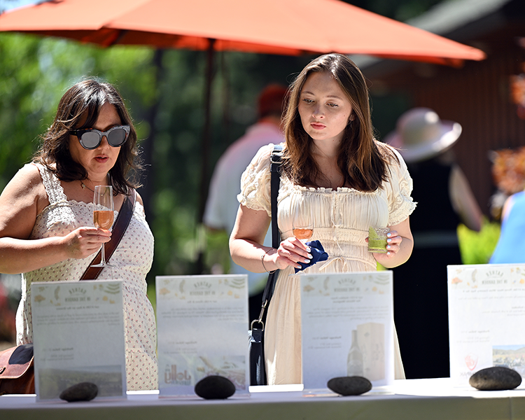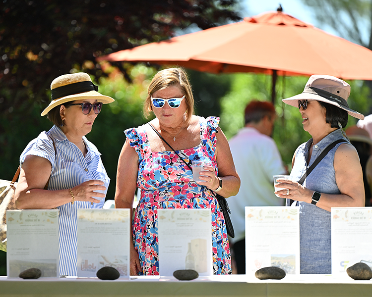 Guests are welcomed with sparkling wine before wandering at their own pace through vibrant garden paths, tucked‑away corners, and sweeping farm vistas, all while enjoying live music drifting through the landscape. Throughout the afternoon, roaming waiters offer beautifully crafted bites from renowned Chef Kyle, perfectly paired with exceptional Caddis wines.